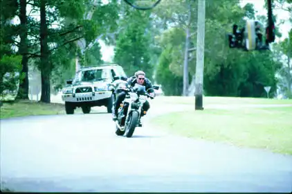 Одним из наиболее известных трюков фильма стала мотоциклетная погоня в Сиднее. Съёмки в австралийской столице потребовали согласования с местными властями, закрытия участков дорог и точной координации с дорожным движением. Для получения динамических и выразительных кадров операторская группа использовала не только стандартные крановые установки и машины для съёмок, но и специальные крепления на самих мотоциклах, что давало ощущение скорости и близости к действию. Том Круз, как и в других своих работах, принимал активное участие в выполнении трюков: он прошёл серьёзную подготовку и лично ездил на спортбайке в большинстве эпизодов, где это было безопасно и оправданно. Это придавало сценам дополнительную достоверность — зритель действительно ощущал риски, на которые шёл персонаж, и это усиливало эмоциональную вовлечённость.